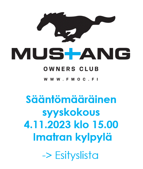 Ford Mustang Owners Club of Finland Sääntömääräinen syyskokous Aika: 4.11.2023 klo 15.00 Paikka: Imatran kylpylä Esityslista Kokouksen avaus Kokouksen puheenjohtajan ja sihteerin valinta Kahden (2) pöytäkirjantarkastajan valinta Kokouksen laillisuuden ja päätösvaltaisuuden toteaminen Esityslistan hyväksyminen työjärjestykseksi Toimintasuunnitelman ja talousarvion vahvistaminen vuodelle 2024 Jäsenamksun vahvistaminen vuodelle 2024 Johtokunnan erovuorossa olevien toimihenkilöiden tilalle uusien toimihenkilöiden valinta 2024-2025 Kahden […]